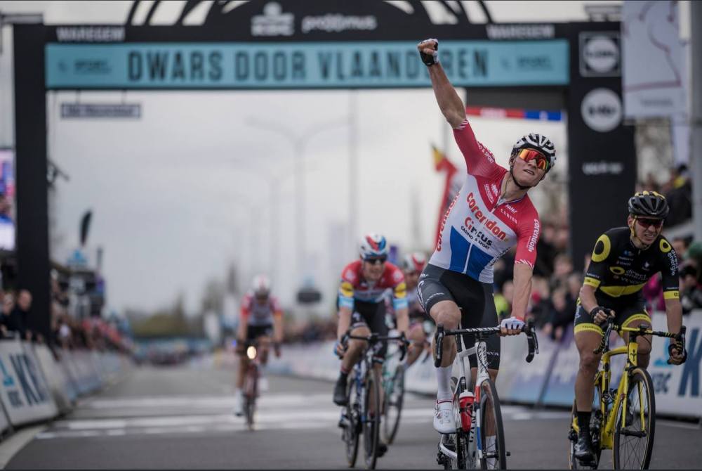 Une offensive à 50km de l’arrivée, qui y croyait ? Pas grand monde, sauf lui. Le néerlandais ne s’est pas posé de question. Rejoint par 5 coureurs qui se joueront la victoire finale, VDP fait grosse impression. Il s’impose finalement le sprint après avoir géré toutes les attaques de ses adversaires parfaitement. Il lève les bras devant Anthony Turgis (Direct Energie) et Zdenek Stybar (Deceuninck-Quick Step), champion de Chèque en titre.